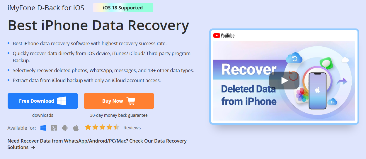 Its exclusive tech recovers photos directly from iCloud or device storage—no backup needed—even if your iPhone is broken, locked, or reset. Preview files for free before recovery and enjoy 2–3 times faster scans than rivals.