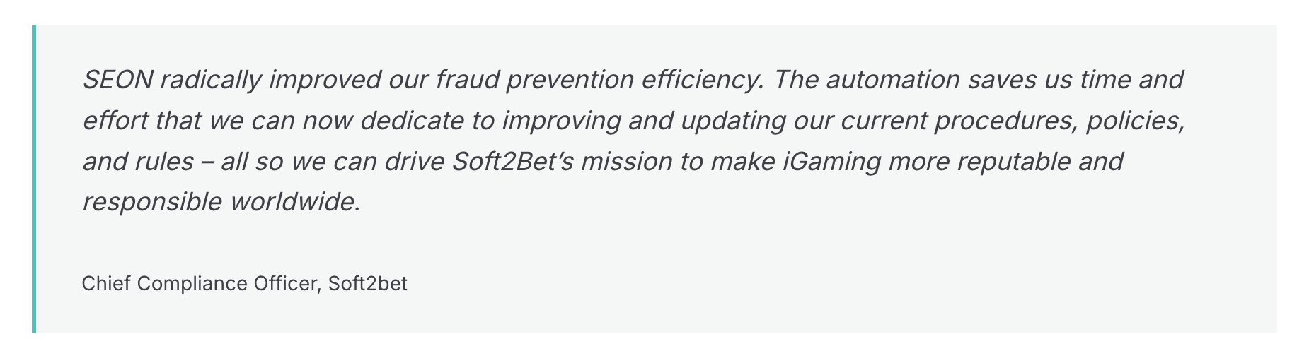 Soft2Bet knows it doesn’t have to build every tool itself. Instead, it works with experts in fraud prevention, payments, and compliance.