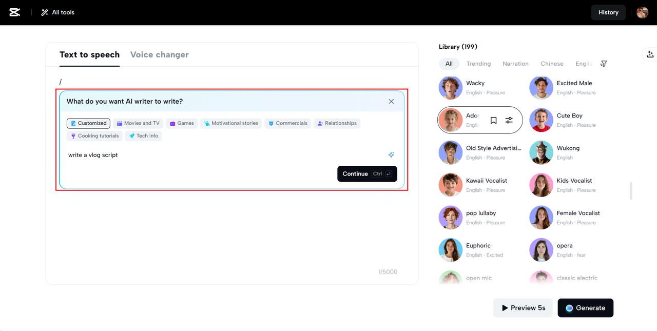 CapCut Web text to audio free tool allows you to add voice variation in learning. Various tones can be used to emphasize, highlight key points, or create interest.