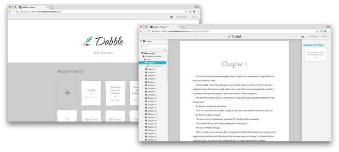 Dabble is another cloud-based novel writing software that focuses on clean design and ease of use. It helps authors manage plotlines with a plot grid, track characters and settings, and keep their notes organized.