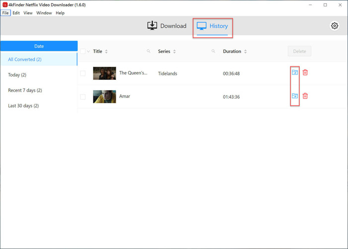 After downloading complete, please clicking “History” tab and open the output folder, you will get MP4 videos files for viewing offline.