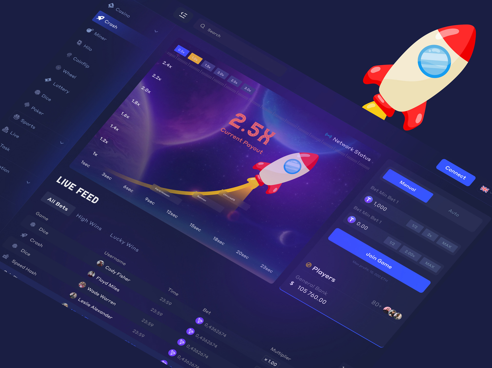 This continues until the multiplier “crashes,” ending the round and wiping out anyone who hasn’t cashed out. This sophisticated “risk vs. reward, time vs. timing” mechanism is easy to grasp and very compelling.