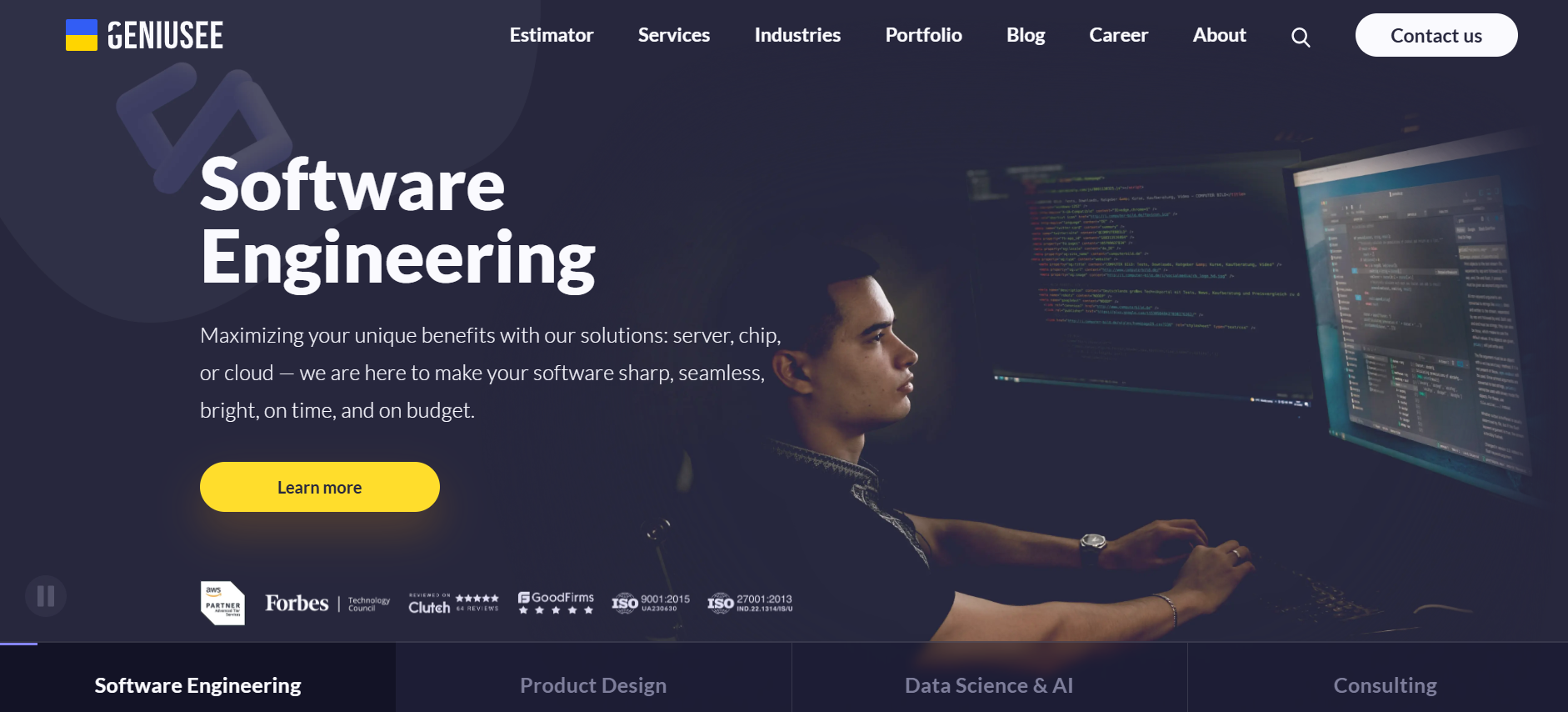 Geniusee maintains focused expertise across several high-growth sectors, including FinTech, EdTech, Retail, and Real Estate.